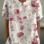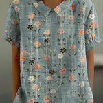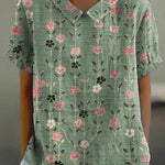 Descubra a nossa blusa casual de algodão e linho, perfeita para um look descontraído. Com o seu corte regular e mangas curtas, esta blusa é ideal para o dia a dia. O colarinho redondo e o padrão floral pastoral conferem um toque de charme, oferecendo conforto e estilo.