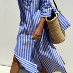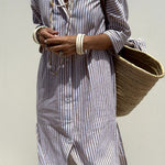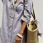 O nosso vestido de camisa riscado Sophia é mais do que uma peça de vestuário: representa elegância intemporal e um conforto incomparável. Com o seu design sofisticado e a sua confecção de alta qualidade, este vestido oferece o equilíbrio ideal entre moda e funcionalidade, para que você não só tenha uma boa aparência, mas também se sinta bem.