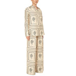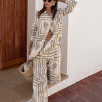 Conjunto de Senhora de 2 peças com Estampado Geométrico: Camisa e Calças de Perna Larga
