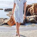 Deixe o seu estilo falar por si com o elegante vestido de camisa riscado da Martine™!