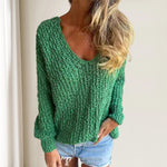DESIGN ELEGANTE COM DECOTE V PROFUNDO: Este pullover apresenta um decote V profundo e na moda, que confere um toque de elegância ao seu visual. Perfeito para usar em camadas ou sozinho, realça maravilhosamente a sua figura.